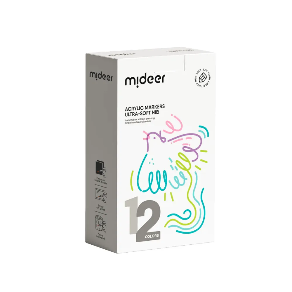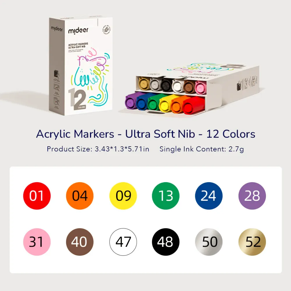 Mideer Acrylic Markers Ultra-Soft Nib 12 Colors