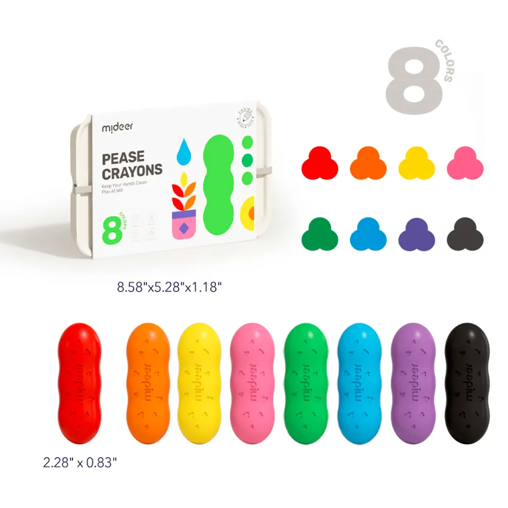 The Pease Crayons Series are designed to keep your hands clean while coloring. Made from natural beeswax and free from harmful substances, these crayons ensure safety for young artists. The high-quality German color pigments provide vibrant and smooth coloring. With a unique pea shape and an ergonomic curved design, they fit perfectly in small hands, making them easy to grip. Their sturdy construction means there’s no need to worry about them being thrown, dropped, pressed, or broken.