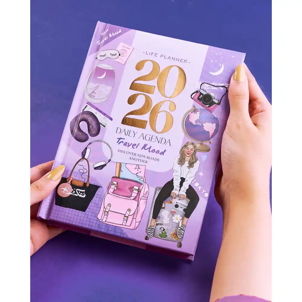 Featuring a durable hardcover with elegant gold-foil 2026 detailing, the Travel Mood agenda blends style, inspiration, and practicality. Inside, you’ll find a thoughtfully organized layout designed to help you track your goals, manage your schedule, plan important tasks, and stay motivated all year long.