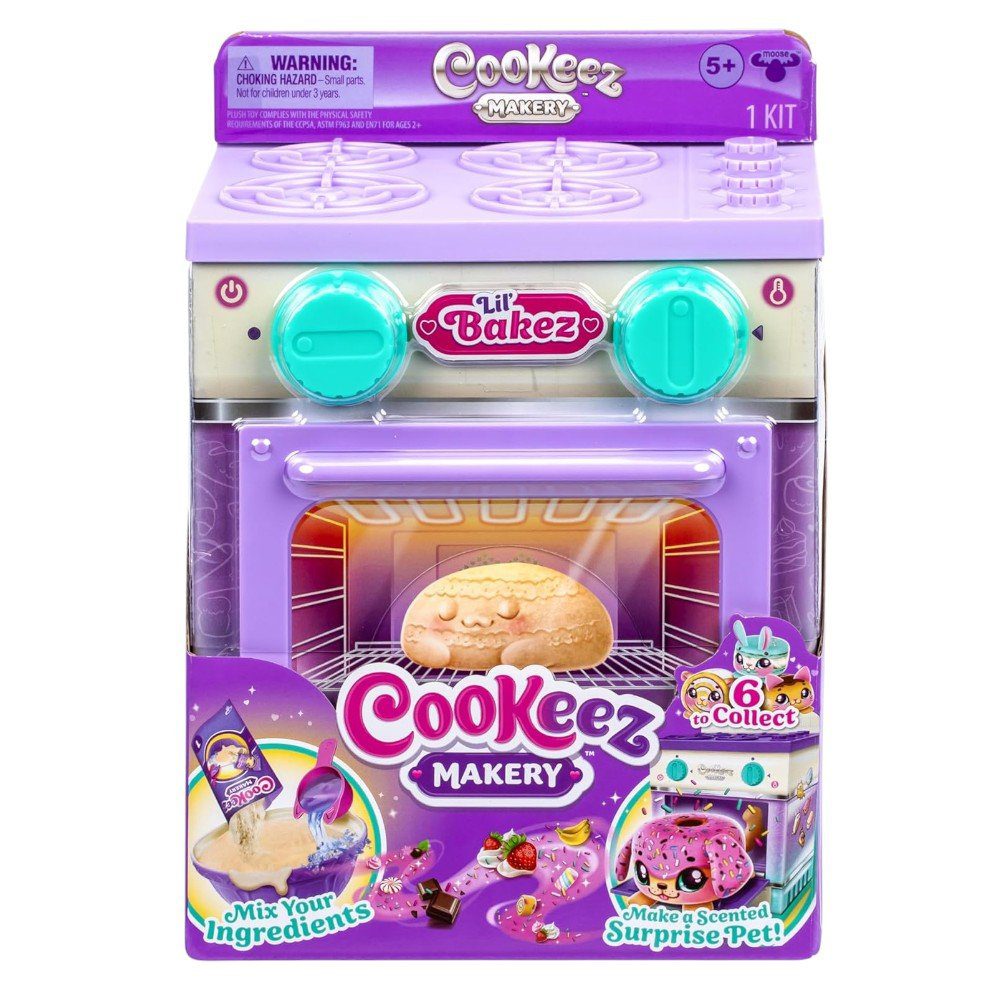 Get ready for magical baking fun with the Cookeez Makery Lil’ Bakez Oven! Watch as your child mixes, bakes, and reveals a deliciously scented plush best friend shaped like a yummy baked treat.Everything your little chef needs to create their surprise bake is included! Inside the oven, they’ll find ingredients, a measuring cup, and fun accessories to start mixing and making their very own plush pet.