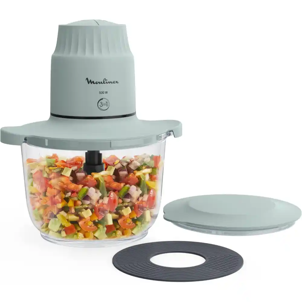 Discover the power of Choppeo, the glass bowl chopper that chops, mixes and minces with smoothness and precision! Made for everyday use with a durable borosilicate glass bowl and a generous 1 L useful capacity, it delivers quick results thanks to its 4 stainless steel blades, powerful motor, and two versatile speeds. This 3-in-1 appliance brings versatility to your culinary adventures and allows you to handle wide range of ingredients—including cheese, nuts, vegetables, herbs, meat and more!