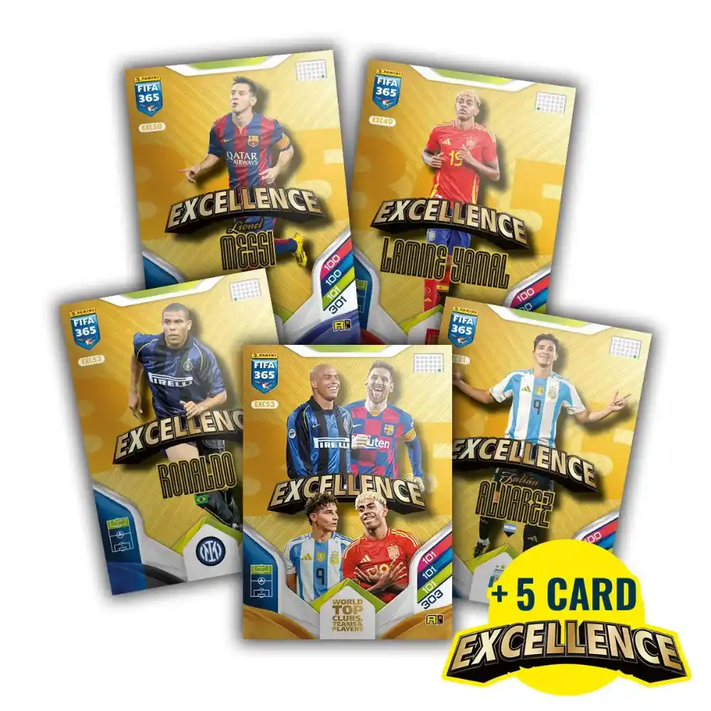 The Excellence Box is a premium set from the Panini FIFA 365 Adrenalyn XL 2026 collection, an official football trading card game. Designed for both experienced collectors and newcomers, it offers exclusive content not available in standard booster packs.