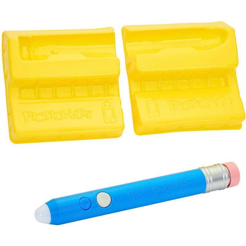 The original award-winning drawing game gets a high-tech boost with Pictionary Air 2! Sketch clues in the air and see them on a device or cast to the TV. Now, with this Pictionary Air 2 update, players can add points and clear the screen using the pen. Also, download digital clue packs for all ages, so it can be played by multi-generational families, at kids parties or adult game nights!.2 Device stands included as 2 devices are needed: one to capture the drawings and the other to read clues. *2 smart device and app required to play. 2 smart devices not included.