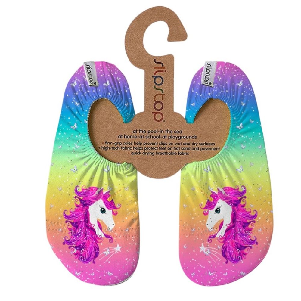 SlipStop Anti-Slip Kids Shoes are designed to keep little feet safe and comfy wherever they go. Featuring a flexible, breathable fabric and a durable non-slip sole, these lightweight shoes help prevent slips on wet or smooth surfaces. Whether your child is at the beach, by the pool, in indoor play areas, or at home, SlipStop provides reliable protection without restricting movement. The easy slip-on design ensures hassle-free wear, while the fun and colorful prints make them a favorite for kids of all ages. Quick-drying and compact, they’re also perfect for travel and everyday adventures. Suitable for use in water and on dry land.