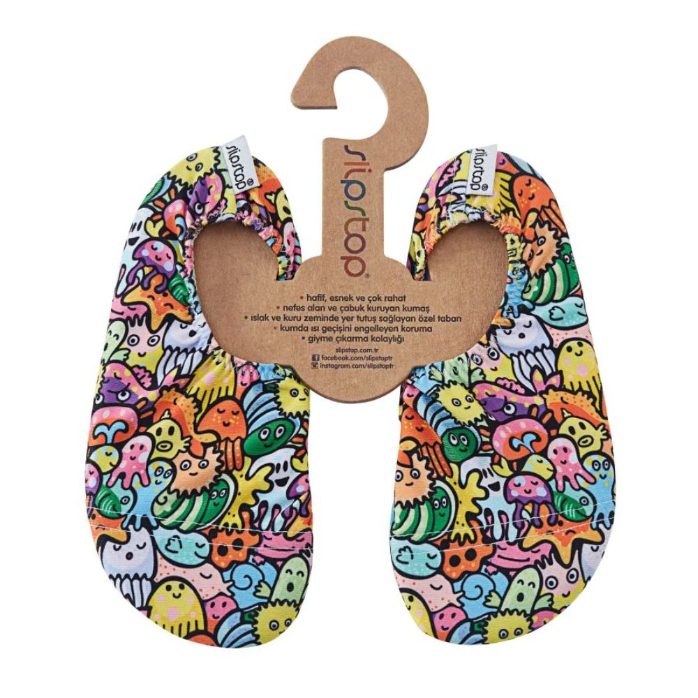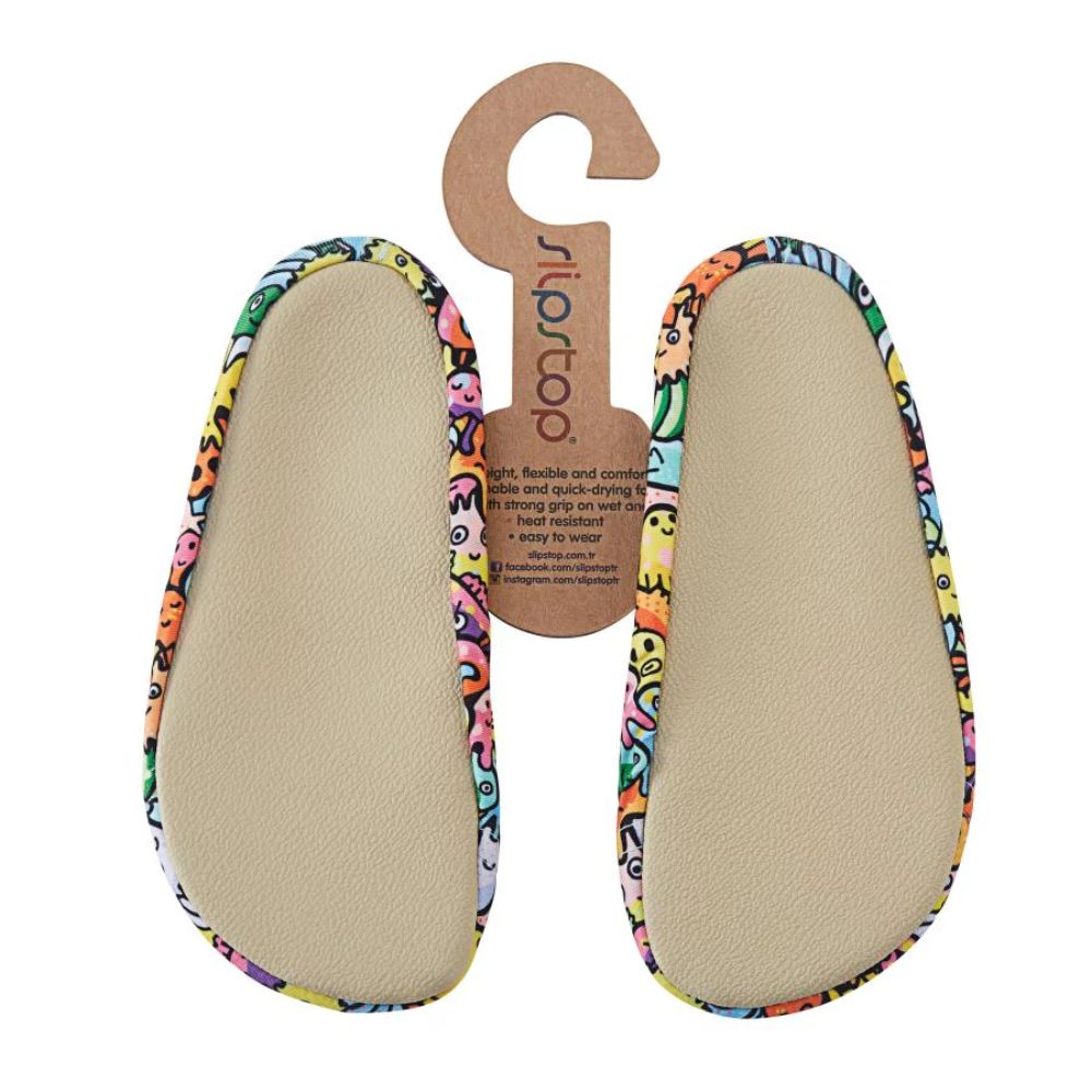 SlipStop Anti-Slip Kids Shoes are designed to keep little feet safe and comfy wherever they go. Featuring a flexible, breathable fabric and a durable non-slip sole, these lightweight shoes help prevent slips on wet or smooth surfaces. Whether your child is at the beach, by the pool, in indoor play areas, or at home, SlipStop provides reliable protection without restricting movement. The easy slip-on design ensures hassle-free wear, while the fun and colorful prints make them a favorite for kids of all ages. Quick-drying and compact, they’re also perfect for travel and everyday adventures. Suitable for use in water and on dry land.