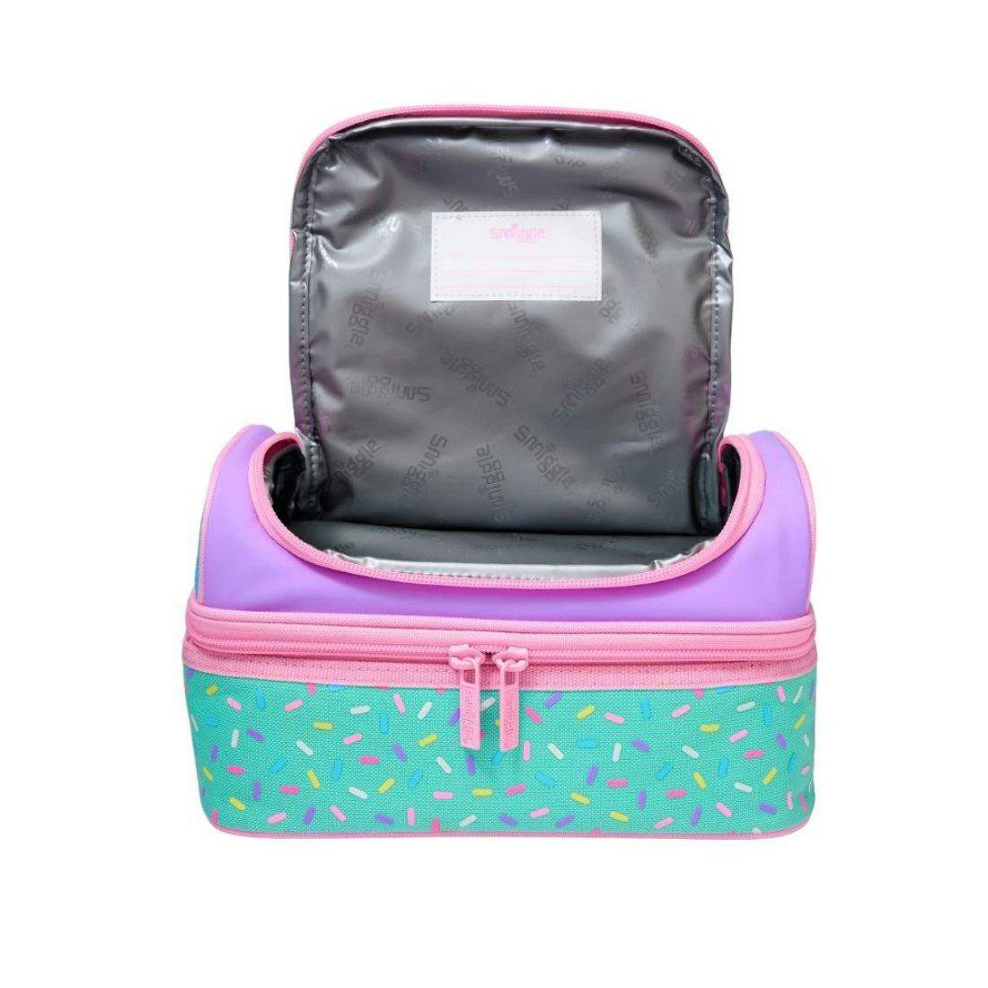 Get lunchtime ready with our Best Budz Double Decker Lunchbox. The two tiered design helps to separate lunch from snacks, leaving plenty of space for a perfectly balanced lunch. Insulated and BPA free lining also keeps food fresh and ready for when hunger hits!.2 compartments with double zips,BPA free and food grade safe lining,Padded Insulated Lining ,Name label,Carry handle,Keeps your lunch cool