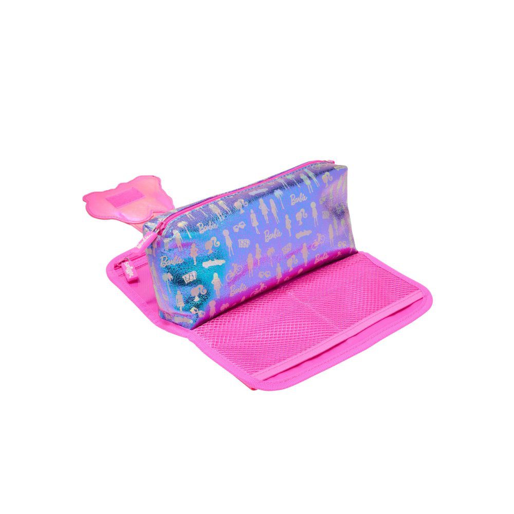 With three zipped compartments and a clear front pocket, there?s plenty of room to organize pens, pencils, highlighters, erasers, and even your favorite Barbie accessories! The secure velcro flap closure keeps everything tucked away safely, whether you’re at school, a playdate, or packing for a sleepover.