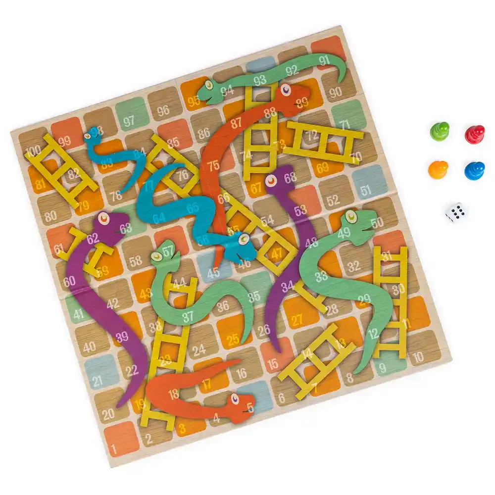 In this family-friendly sliding and climbing game, players race to be the first to land exactly on square 100. Climb ladders to speed ahead—but watch out for those slippery snakes! One wrong slide and you’ll tumble back down the board.