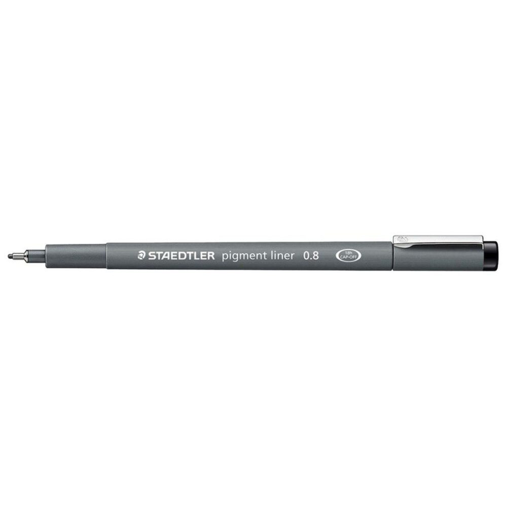 This Staedtler Pigment Liner is the perfect tool for writing, sketching and drawing thanks to its fine 0.8 mm nib. It has a long metal tip making it ideal for use with rulers and templates and has a polypropylene barrel for durability. The ink is waterproof for long lasting artworks but erasable when used on drafting paper.