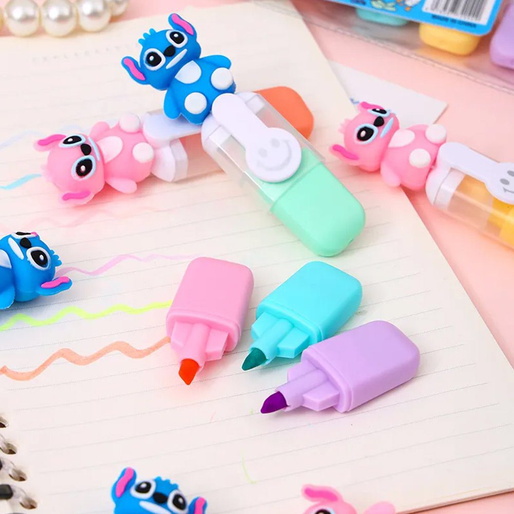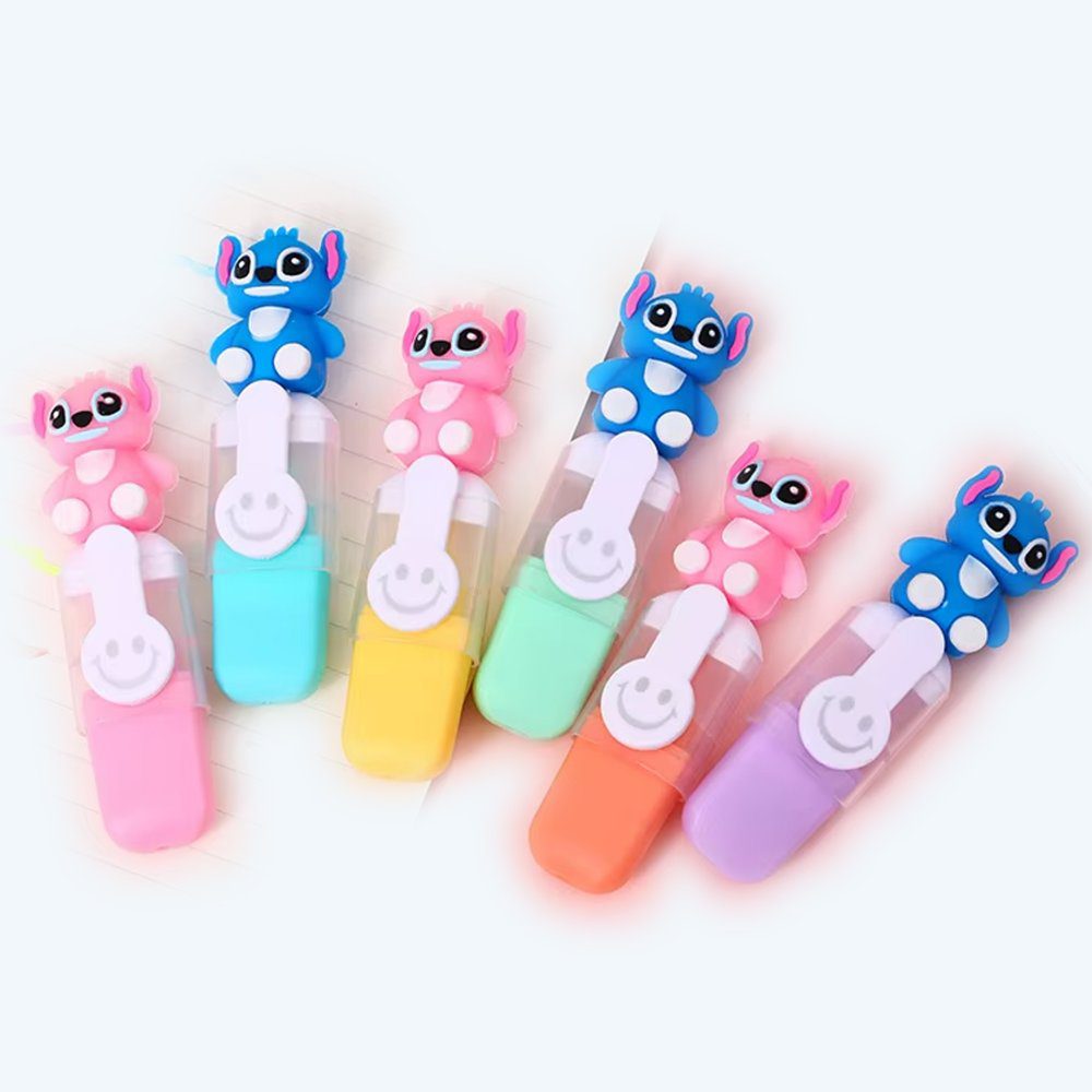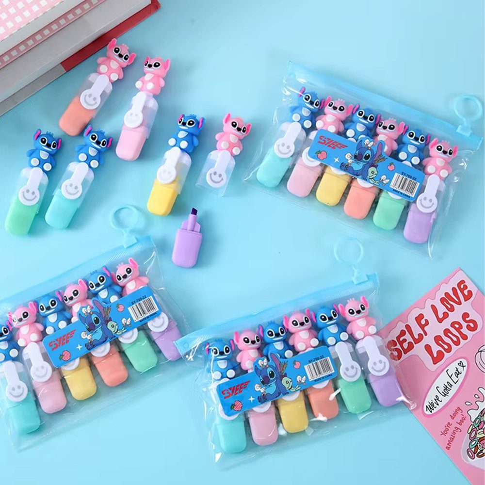 Disney Stitch 6-Piece Highlighter Set ? Colorful Mini Cartoon Stationery for Students & Gifts