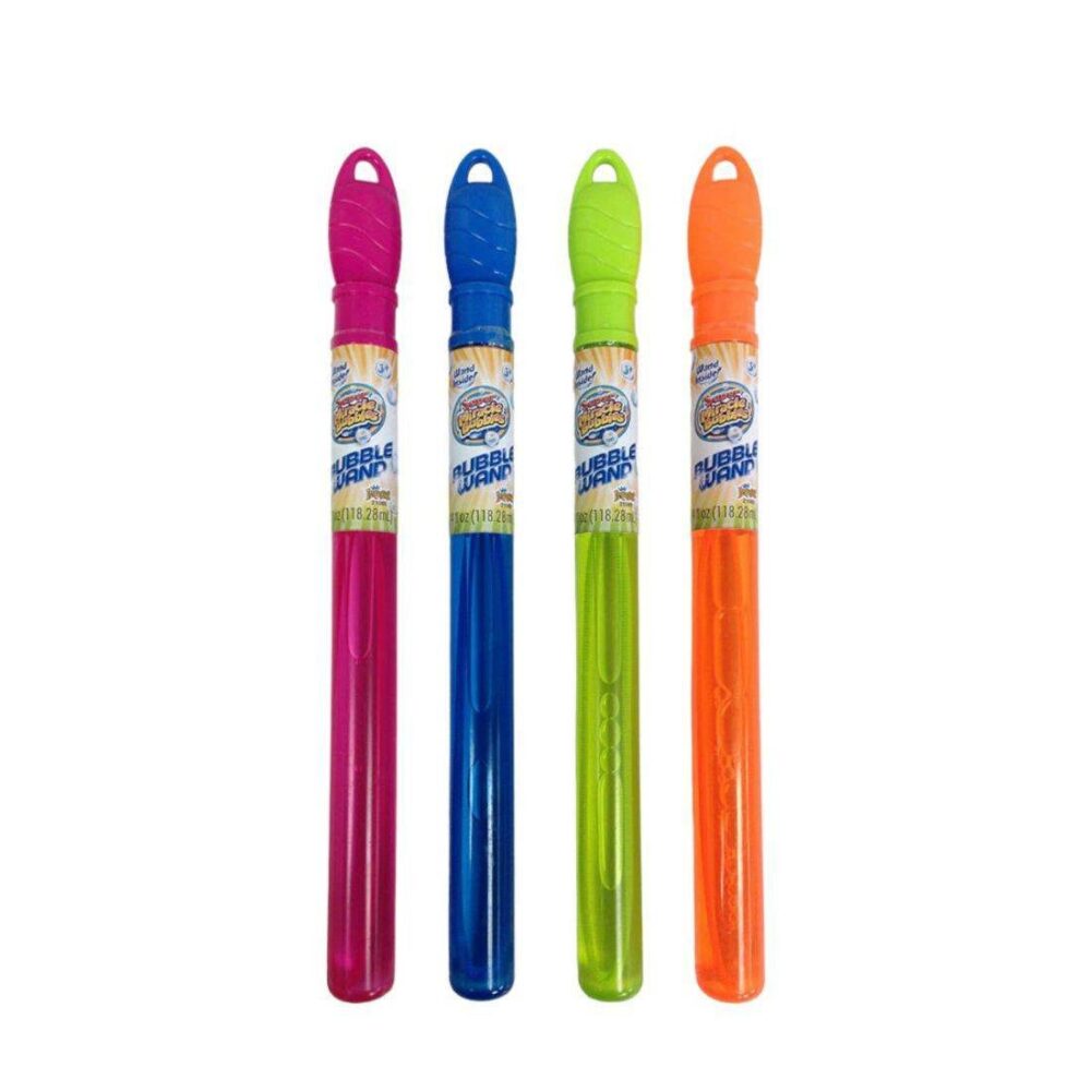 Create “super” size bubbles with the premium 14-inch bubble wand. The tube includes 4 fluid ounces of bubble solution and a bubble wand designed to make giant bubbles. Remove the wand from the tube and slowly shake the bubble wand to create massive bubbles. Stick shafts available in a variety of colors (red, green, orange, and blue). From 3 years.