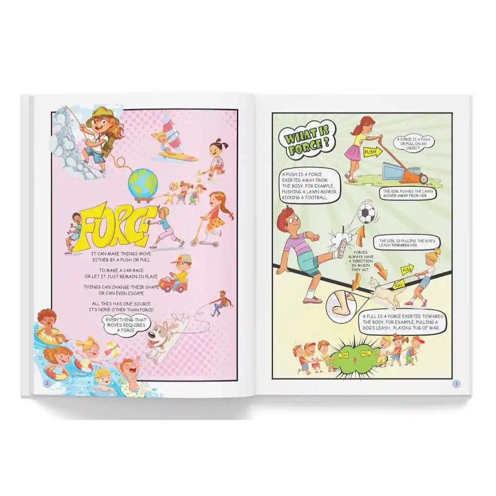 What is force? How do objects move? What determines the speed of moving objects? Let your child explore answers to these questions and many more with Force and Motion, a marvelously illustrated Science Essentials book. Packed with engaging explanations and vibrant visuals, it introduces young learners to the fascinating world of physics, helping them understand basic concepts of motion, force, and energy in a fun and interactive way.
