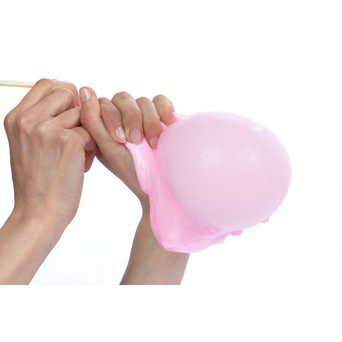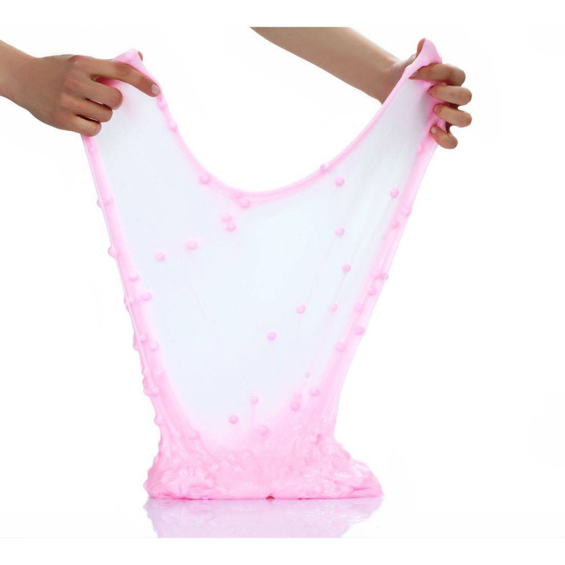 Beautifully scented, pink, stretchy thick slime! Perfect for making bubbles and stretching it out as a gum! Contains some pink crunchy foam balls!