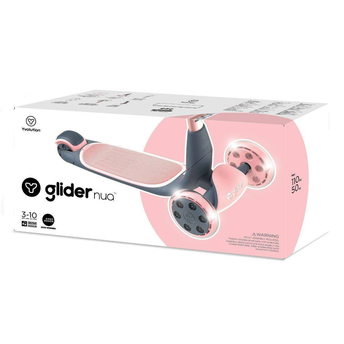 The Y Glider Nua has extra wide LED front wheels for an incredibly bright look and better visibility on the streets. Equipped with an extra wide rear wheel, it provides more stability and stronger braking, which is safer for children.The extra-wide deck allows you to put your feet side by side; finished with high-grip rubber, it gives them a comfortable ride, allowing them to gain more confidence while learning. Thanks to the perfect tilt mechanism, there is a smooth-rolling scooter to steer that allows them to glide further and longer.