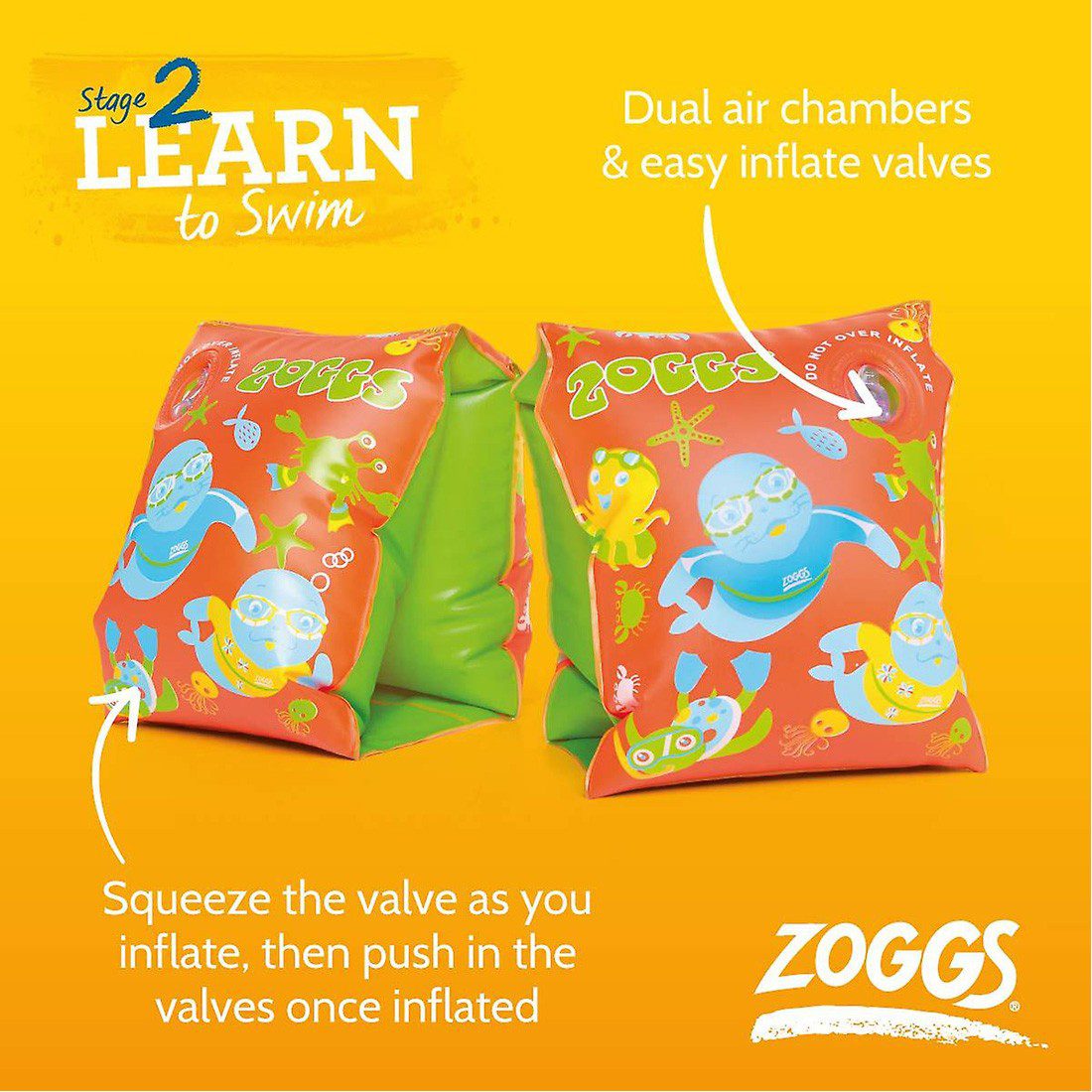 Swim with Zoggy and friends! These Zoggs Zoggy Swim Bands are perfect for learning to swim. Designed for children aged 1-6 years, these swim bands can be put on with ease even when inflated. Featuring easy inflate valves and made of durable Vylux material.